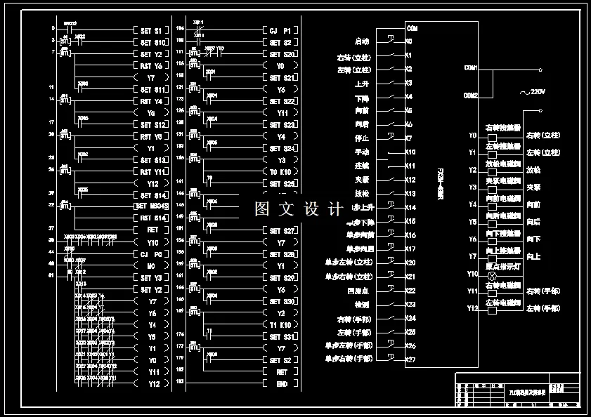 本课题是为完成车间搬运工作而设计的搬运机械手。机械手是工业生产的必然产物,它是一种模仿人体上肢的部分功能,按照预定要求输送工件或握持工具进行操作的自动化技术设备,对实现工业生产自动化,推动工业生产的进一步发展起着重要作用。因而具有强大的生命力受到人们的广泛重视和欢迎。本课题的机械手是采用气压传动装置,PLC控制机械手,它的基本作用是从指定位置抓取工件运送到另一个指定的位置。主要完成的是气压传动式机械手臂的结构方面设计,以及用PLC软件进行简单的控制编程设计,使机械手具备手爪张合;手部回转;手臂伸缩;手臂回转;手臂升降5个主要运动。