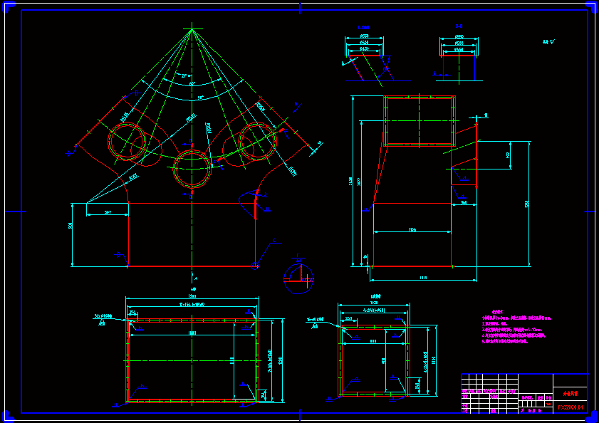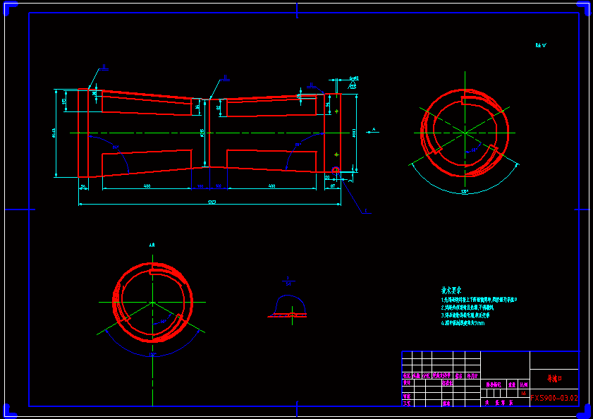 FXS900组合式选粉机总体及双出风口分离器设计 摘要:选粉机是圈流粉磨系统的主要设备之一,通过选粉机对粉末粒径的选择,能够很大程度上减少细粉重新进磨,解决对粗粉粉磨的缓冲作用问题,从而提高粉磨效率,进而提高了能源利用率。本课题设计的是FXS900组合式选粉机,它是在旋风式选粉机的基础上进行改进而成的一种高效旋粉机。该设计吸收了O-SEPA选粉机的的先进悬浮分散技术和平面涡流理论,并在选粉机主体四周设有旋风筒来收集细粉。设计内容分为选粉机总体设计和双出风口分离器的设计。在进行总体设计时,通过风量的计算选择风机,确定旋粉室直径与转子直径,再计算主轴的转速和选粉机的功率,选择电机和减速机。双出风口分离器的设计是我此次设计的重点。双出风口分离器的结构设计主要是在单出风口分离器的基础上改进而来。传统的旋风分离器存在下述三个主要缺陷: a.旋风分离器中心净化气流是一股较强的旋涡流无用压力损失占分离器总压力损失65%以上。 b.在上进风口与上出风口间存在短路流。 c.锥部集料口因气流转向而导致已沉降微细粉尘“二次返混”。 通过在筒体内增设可调节开度的导流口,改善了旋风分离器内的流场,使得分离器的捕集细粉能力有了显著的提高,为现行组合式选粉机改造拓展了市场。