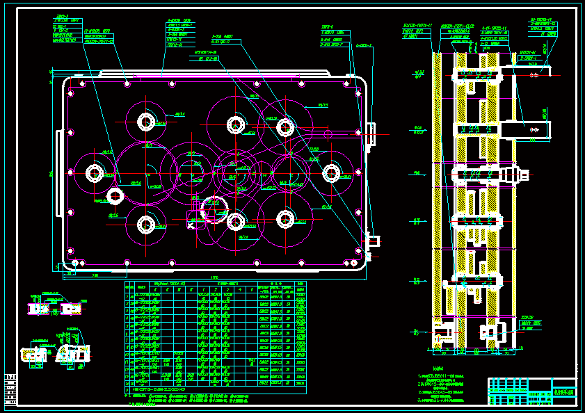 发动机右挡板专用机床及主轴箱设计 本设计的主要内容有:组合机床的组成和特点、组合机床通用部件及其选用、组合机床总体设计、组合机床多轴箱设计、组合机床技术设计五个部分。主轴箱设计应充分考虑被加工工件的形状及加工要求,合理布置传动系统及齿轮的位置。在齿轮的设计上,更要反复地验算转速,努力作出最合理的设计方案。所设计出的组合机床满足加工要求,并且有效使用动力,各部件分布合理。主轴箱传动路线合理,齿轮与轴不发生干涉,且使用尽量少的使用次数完成传动。