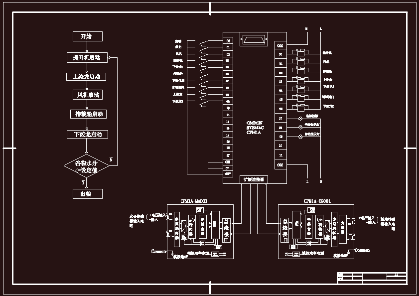基于PLC在谷物烘干机自动控制中的应用本次设计采用了PLC来控制燃油循环式谷物烘干机,实现谷物自动烘干的全过程。即进粮、循环烘干、出粮的自动控制。根据设计要求,采用了编程软件来实现谷物烘干自动控制过程,采用了顺序起动的过程来逐步实现各个部件的起动和温度和水分的实时监控。另外设计了便于维修和调试用的软件,用于各个部件的调试和维修,即手动维修和自动控制。在手动维修时候,有手动指示灯显示状态。在自动循环控制中,有自动指示灯显示工作状态。当温度传感器扩展模块采集到的的数据送回PLC后,经过相应的软件比较之后,从而调节温度阀门,来实现温度的自动调节。当谷物水分传感器采集到的数据送回PLC之后,经过相应的软件比较后,决定是否循环烘干或者出粮。如果水分达标合格,则出粮指示灯亮。 本次设计能够达到所要求的自动循环控制,系统结构简单,运行稳定可靠。