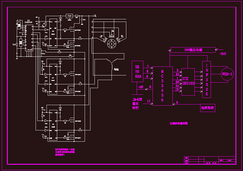基于MC33035芯片的电动自行车电机控制器电路设计 利用MC33035芯片进行低成本、高智能无刷直流电动机控制系统的设计,能够简化系统构成、降低系统成本、增强系统性能、满足更多应用场合的需要。 通过对采用MC33035芯片的电动自行车电机控制器电路的分析,结果表明:本课题设计的基于MC33035芯片的电动自行车控制器不但具有运行性能良好,可靠性高的特点,而且实现了自适应启动、巡航等功能,为后续的研究工作提供了一定的基础。