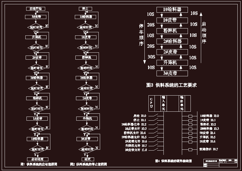 电厂燃料输送带的PLC控制设计 供料系统是用于生产原材料输送处理的流水线设备,主要是用于煤粉、矿石等生产材料的加工和供料。 供料系统一般是由给料器、传送带、粉碎机、升降机等单件设备组合来完成特定工艺过程。这类系统的控制需要动作稳定,具备连续可靠工作的能力,同时考虑到原材料处理过程中设备经常需要启停进行处理的情况较多,所以对于设备的控制也有一些特殊的要求。 目前,供料控制系统在工业领域有着广泛的应用,例如,火电厂的燃料煤是通过煤厂的输送带送进锅炉的,因此,需要对输送带实现自动控制。此外,供料控制系统也广泛运用井下采矿和食品业等。对于供料控制系统实现自动控制以及其运行的可靠性与稳定性直接影响着生产发展。采用传统的接触继电器控制系统,不仅接线复杂,抗干扰能力差,易因接触不良而造成故障,而且功能扩展性差。PLC系统因其可靠性高,编程简单、功能完善而越来越来受到青睐,传统的接触继电器控制系统已经逐步被PLC系统所取代,。本文介绍了基于PLC的供料控制系统,该系统采用可编程控制器来完成对供料系统的控制,可以满足实际工艺要求的各类控制条件,同时对于一些复杂的控制需求也可以通过可编程控制器的指令顺利实现。