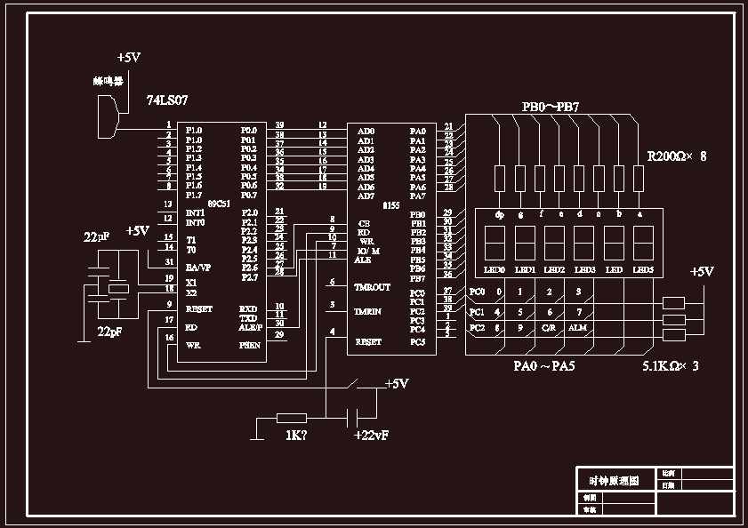单片机在电脑时钟设计中的应用本课题通过单片机来设计电子时钟,采用汇编语言进行编程,可以实现以下一些功能:小时,分,秒和年,月,的显示、定时报警功能。本次设计的电子时钟系统由时钟电路,LED显示电路,定时报警电路,按键调整电路四部分组成。单片机通过软件编程,在6-LED显示器上实现小时、分、秒和年、月、的显示;利用AT89C2051来实现计时、定时功能;通过两个按键开关,一个用于时钟的调节,一个用于闹钟的调节,来实现参数设置和调节功能;到达设置的闹钟时间,由蜂鸣器发声,起报警作用。本次设计的电子时钟,经过对比测试,发现实际计时的走时精度较高,可满足多种场合的应用需求。