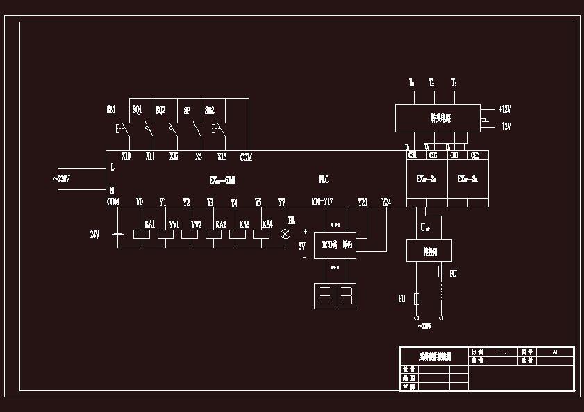 PLC在温度检测与控制系统中的应用自动生产控制中,为了生产安全或保证产品质量,对于温度、压力、流量、成份、速度等一些重要的被控参数,通常需要进行自动监测,并根据监测结果进行相应的控制。温度是工业生产对象中主要的被控参数之一,本文通过设计温度监测与控制系统,体现PLC在模拟量信号监测与控制中应用的优越性。 本系统是一恒温控制系统,要求设定的恒温箱在 C~ C范围之间。当设定温度后(本文的设定温度为 C),启动水泵向恒温水箱中进水,水上升到液位后,启动搅拌电动机,测量水箱水温并与设定值比较,若温度差小于 C,要采用PID调节加热。当水温高于 C~ C范围内,要进冷水。当水温在设定值 C~ C范围内时,仍采用PID调节加热。当水温高于设定值 C以上时,采用进水与风机冷却同时进行的方法实现降温控制。同时设有声光报警系统,水温若低于温度下限 C或高于上限 C时,系统自动调节,当调整3分钟后,如还不能脱离状态,则采用声光报警。