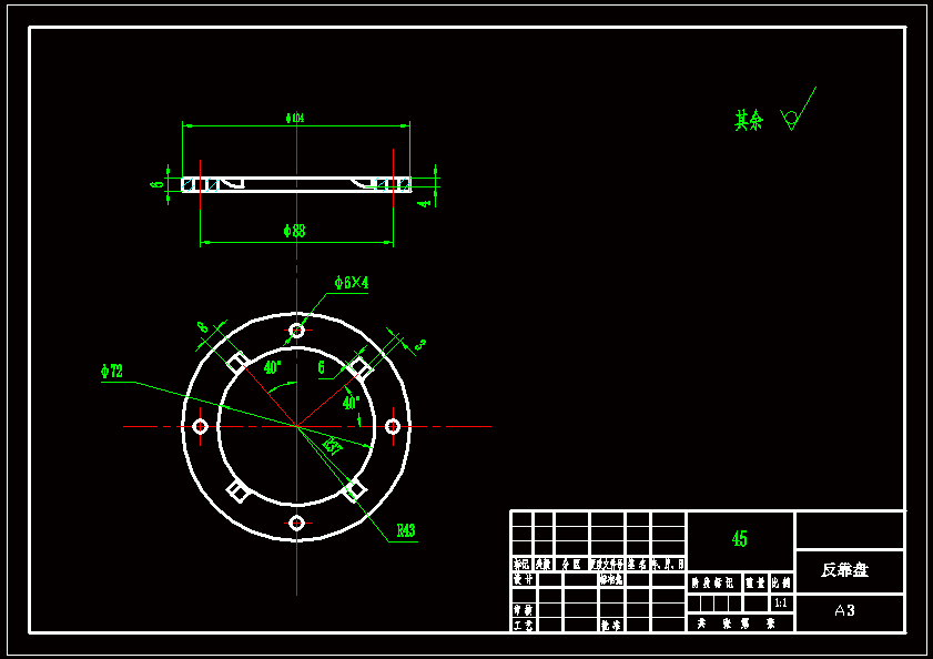 数控车床回转刀架设计(优秀包含7张CAD图纸) 数控刀架作为数控机床必需的功能部件,直接影响机床的性能和可靠性。数控车床回转刀架的基本要求: (1)转位准确可靠,工作平稳安全。 (2) 按最短路线就近选位,转位时间短。 (3) 重复定位精度高。 (4) 防水、防屑、密封性优良。 (5) 夹紧刚度高,适宜重负荷切削。 CK6140为经济性数控车床。其设计的刀架可与数控车床的数控系统接口相连接,又可配置简易的数控系统,辅助主机完成轴类、盘类等零件的车外圆、端面、圆弧、刀槽、切断、车螺纹、镗孔的加工工序。 按照数控车床回转刀架的基本要求和CK6140车床的实际情况,本设计初选刀架为立式简易型四工位电动机回转刀架,采用蜗杆传动,上下齿盘啮合,机械螺母升降转位式的工作原理。