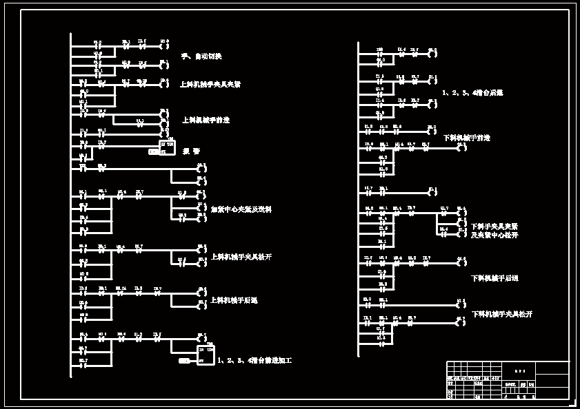 基于PLC的组合机床控制系统设计 组合机床是高度机电一体化的产品,是现代机床技术水平的重要标志,是现代机械制造业重要标志,是现代制造业的基础装备,尤其是在加工产品更换频繁、零件形状复杂、精度要求较高的工件时,不但可以节省大量的时间和资源,而且还能够确保工件的质量与产量,进而提高生产效率,具有良好的经济性。 传统的机床主要采用继电器--接触器进行控制,其缺点是故障率高、可靠性差、维修工作量大等,而采用PLC组成的控制系统可以很好地解决上述问题。本文在基于可编程控制器(PLC)的结构和工作原理的基础上,介绍了基于PLC的加工中心控制系统的总体方案设计,重点介绍了加工中心控制系统中的硬件选择方法、软件的设计过程,并给出了系统组成框图和程序流程图,提出了西门子PLC的编程方法,列出了具体的主要硬件电路、加工中心的控制梯形图及指令表,解决了继电器——接触器故障率高、可靠性差、安装调试周期长、维修工作量大、接线复杂等缺点。