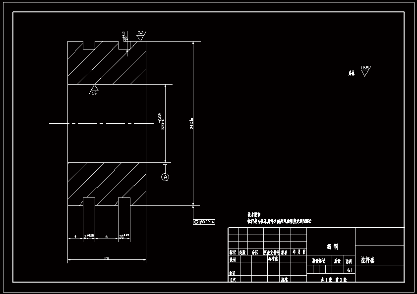 数控机床45#刀柄拉刀机构设计 45#刀柄拉刀机构是数控机床主轴内部用于刀具自动夹紧的机构。在加工之前,刀具由换刀机械手自动装入主轴孔后,其刀柄后部的拉钉便被送到主轴内拉杆的前端。当液压系统接到夹紧信号时,其电磁换向阀左位得电,液压油通向液压缸的左端,活塞在液压油的作用下向右移动。同时,拉杆在碟形弹簧的作用下也向右移动,其前端径向的钢球在主轴内壁的逼迫下沿直径方向收缩。钢球将刀柄拉钉紧紧扣住,在拉杆作用下带动拉钉向右移动。当活塞移动到位时,其活塞杆上的接近开关发出信号,使得液压系统中的电磁换向阀失电回到中位。这时拉杆便保持在拉刀位置上,刀具便被装夹好,此后便可以进行工件的加工了。