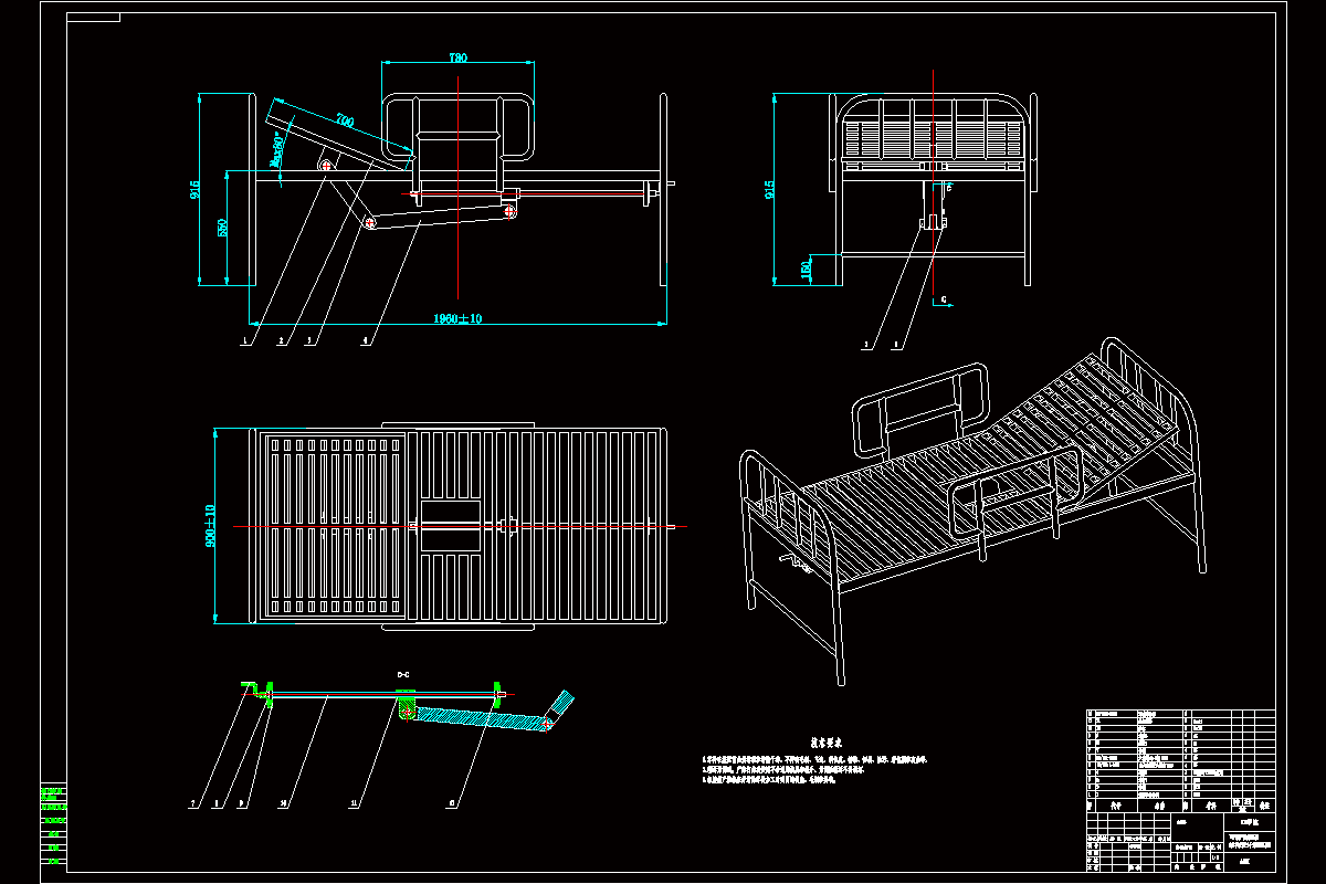 本设计主要研究的内容有:可调节病床结构的设计计算、可调节病床机构的设计计算、传动装置选型,并用总布置草图表达主要底盘部件的改动和重要工作装置的布置;最后通过正确的计算,完成部部件设计选型,达到工艺合理、小批量加工容易、成本低、可靠性高的设计要求,并附之以总装配图,清楚表达设计。