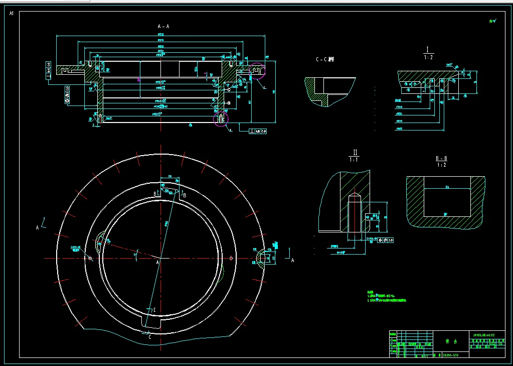本课题为ZP175未来发展需要设计,零件结构是否满足要求,锥齿轮是否合格,轴的强度是否需要加强。根据地质的特色特别是海上作业,决定重新研制ZP175,底座其实还有稳定作用。由于是高强度作业所需功率较大首先要求轴的强度必须合格 ,对于锥齿轮也是要求接触强度和弯曲强度也必须满足要求,对于稳定的传动比并无严格要求。下一步我们要严格选用转盘的各个部件,包裹螺栓,轴承,对于轴承我们不但要求限制功率而且需要要求速度,还有寿命。我们用了很多方法以接近现实的情况,我们采用CAD绘图,用各个软件去模拟。本次设计的主要内容:加工工艺技术指标;零部件的选定;轴承,轴,齿轮的强度计算;底座的选定;转盘总体结构设计和转盘总装图绘制;主要零部件设计和绘制;设计说明书撰写。