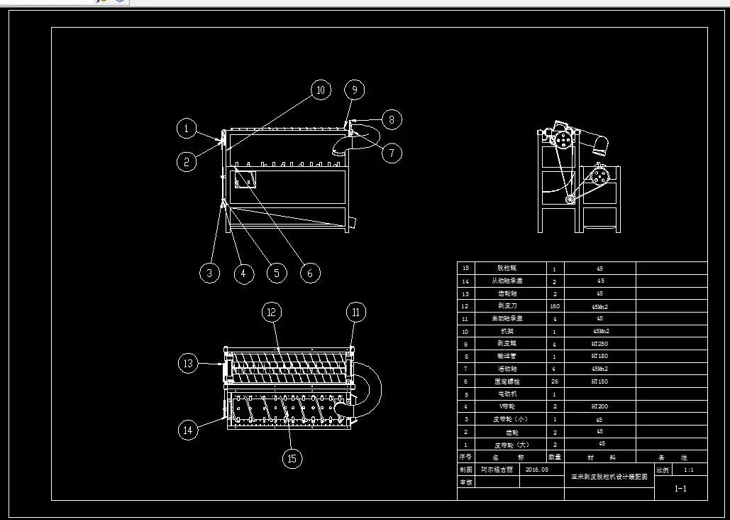 关键词:电动机;剥皮辊; 脱粒辊;输送管