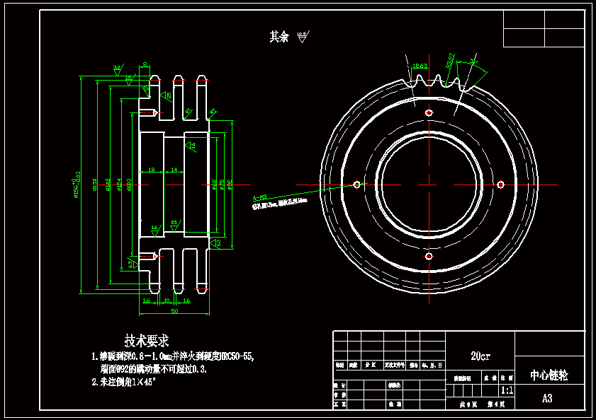 本次设计的项目根据实际设计工作的需要,对机器人链式(行星)越障轮组机构主要的零部件进行设计。对机构各部分的零件进行设计布局,算出齿轮的齿数、模数、齿宽、变位系数和中心距等关键参数,设计轴的结构及尺寸,链轮等.并进行几何尺寸计算、强度计算和安全系数计算。 全方位越障车轮组由动力装置、转向装置和驱动轮系组成。框架上安装了中心轴,中心轴上设有驱动离合器、转向离合器、转臂和中心链轮。每组车轮组的3个车轮轴线呈等角分布。当驱动离合器闭合、制动器制动,转向离合器脱开时,且路面对车轮作用力变化的情况下,驱动轮系亦相应转化构成定轴轮系或行星轮系,实现车轮的驱动或越障。而当制动器脱开,转向离合器闭合时,动力通过啮合齿轮副、转向链轮副和锥齿轮副,使框架相对于车体转动。按轮系传动时齿轮的轴线在空间的相对位置是否固定,轮系可分为定轴线齿轮传动和动轴线齿轮传动两大部分。 整个机构结构简单且行之有效,可广泛用于排爆,救援等危险行业,也可用于高层建筑的外壁清洗,以及管道等狭小空间的作业等。而其未来的发展方向是趋于机械与自动控制,传感技术,PC微机技术相结合,使其逐渐具有信息的收录,分析,和判断能力,真正实现独立自主。