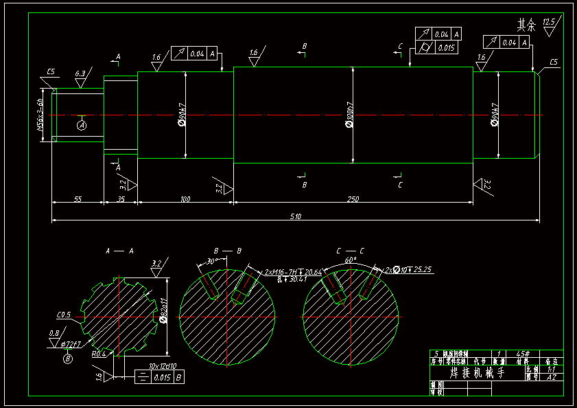在工业生产中,有不少工作会对工人身体产生不良影响,例如焊接工作。而焊接却是生产中必不可少的环节。随着科技的发展和工业需求的增加,焊接技术在工业生产中所占据的分量越来越大,而且焊接技术的优良程度直接影响着零件或产品的质量。国内焊接机器人应用虽已具有一定规模,但与我国焊接生产总体需求相差甚远。因此,大力研究并推广焊接机器人技术势在必行。 为了设计出可以投入生产应用的焊接机械手,通过查阅了相关参考资料,了解了国内外焊接机械手的发展现状,掌握了机械手的基本工作原理,进而对机械手传动机构进行设计计算和强度校核,利用CAD绘图软件绘制出结构图,并对液压驱动系统进行了仿真,最终设计出基本可投入生产应用的焊接机械手。
