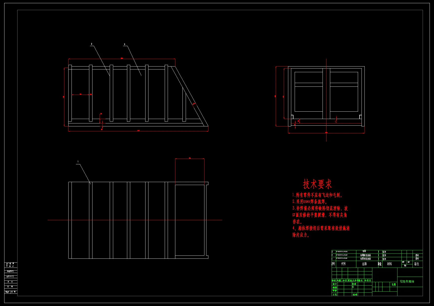 此次设计的主要内容为后装压缩式垃圾汽车的推铲工作装置。选择底盘的型号后,就要设计主副车架的连接方式,确定副车架的尺寸与结构;厢体的总体结构确定完,厢体的尺寸计算就开始了,接下来是布置厢体外加强筋,校核它的强度;之后,就开始了推铲工作装置的计算,当然,首先是选择推铲油缸的驱动方式,然后确定推铲与厢体的连接方式,计算推铲油缸的推力大小,选择合适的油缸。其它的工作则包括压缩机构的布置方案确定,车厢与装载厢的连接方式确定。油缸的连接方式与油缸的参数确定。 整个设计中要查阅很多资料,一些常用件的设计还要参考一些图纸 ,整个设计使我们回顾了课本知识,同时初步知道了如何去运用书中的知识解决实际问题,这次的综合性很高,学到了很多。