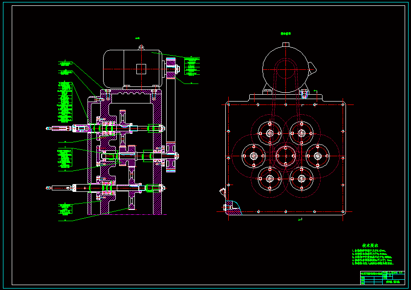 专用三面钻床主轴箱设计 本文主要进行了六主轴专用三面组合钻床主轴箱的设计。设计的主要内容有:主轴箱传动设计、主轴箱动力计算和主轴箱结构设计。具体设计时是依据主轴箱本身的一些设计规律和要求,通过“三图一卡”,仔细分析研究零件的加工部位,工艺要求,确定主轴箱与被加工零件、机床其他部位的关系。主轴箱的设计主要是齿轮的布局和传动系统的拟订。 本六轴组合钻床的优点是采用多轴、多刀、多工序、多工位同时加工的方式, 生产效率比通用机床高几倍至几十倍。缩短了工件的制造周期,提高了工件的加工精度。可以在大批、大量生产中得到广泛应用,并可用以组成自动生产线。