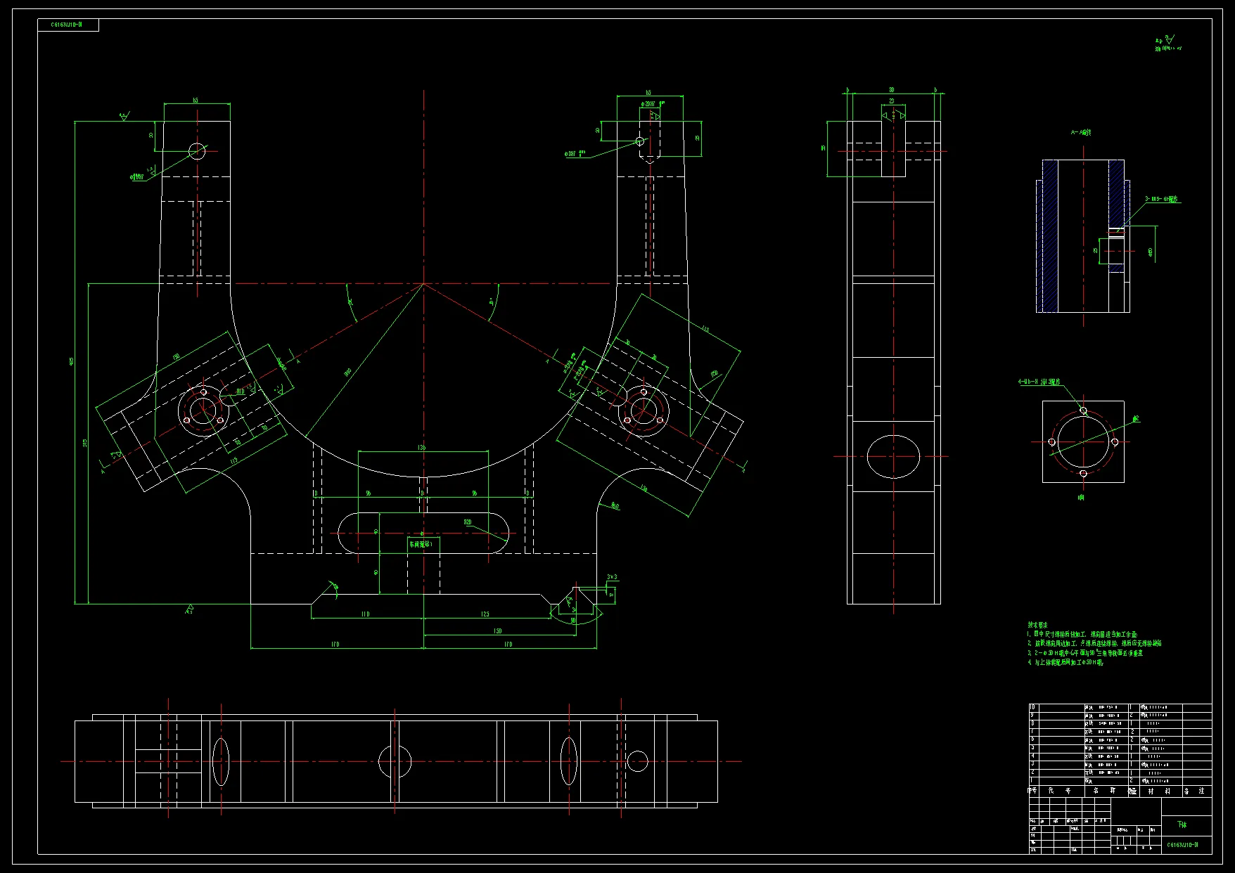 这次中,我所从事设计的课题是C6163车床中心架设计。此类车床中心架属于经济型中档精度机床,这类机床的传动要求采用手动与电控双操纵方式,在一定范围内实现电控变速。总体的设计方案就是对传动方案进行比较,绘出转速图,对箱体及内部结构进行设计,包括轴和齿轮的设计、校核等。