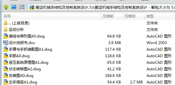 重点针对机械手的腰座、手臂、手抓等各部分机械结构以及机械手控制系统进行了详细的设计。具体进行了机械手的总体设计,腰座结构的设计,机械手手臂结构的设计并对其进行分析计算,机械手腕部的结构设计,末端执行器(手抓)的结构设计并对其进行分析计算,机械手驱动系统的设计。同时对液压系统和控制系统进行了理论分析和计算。基于PLC对机械手的控制系统进行了设计,通过对机械手作业的工艺过程和控制要求的分析,对控制系统进程序设计,同时编写PLC控制程序及梯形图等,设计达到了设计的预期目标。