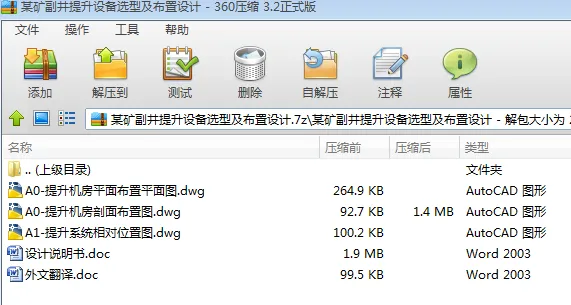 下面是我针对矿井的地质、煤层等情况,本着经济、安全原则对煤矿副井提升设备进行选型计算,并根据《煤矿安全规程》验算其合理性。验算结果合理后,根据各设备外形尺寸及安装要求,并考虑运行条件,最终确定提升机房布置图和井上相对位置图。