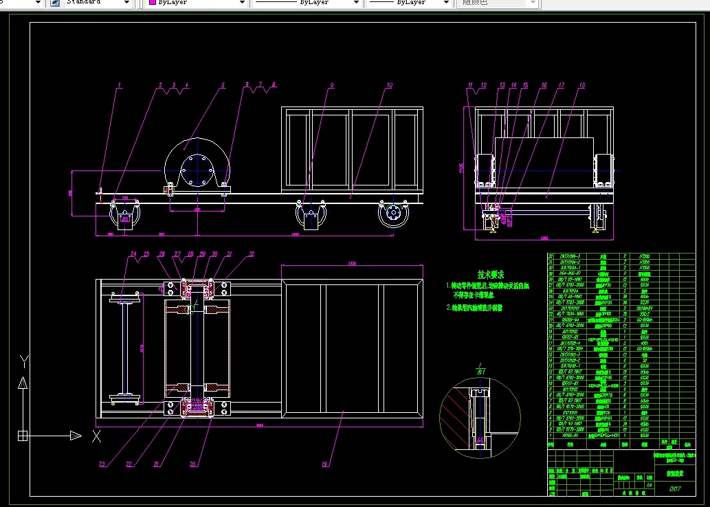 本设计为DX型钢丝绳芯式带式输送机,采用机头双滚筒驱动,在保证滚筒不发生打滑的前提下来传递较大的功率,降低输送带的张力和提高使用寿命。文中根据第二滚筒围包角用足,依此算出输送机的各种参数,进行结构设计。由于倾角较大,按第二滚筒围包角用足进行等驱动功率单元法分配,本设计采用 分配,得出尾部张力最小,根据布置原则,张紧装置一般布置在输送带张力最小处,所以本文采用重载车式张紧装置进行张紧。如今,带式输送机正向长距离、高带速、大功率、大运量的大型化方向发展,使其在煤炭行业得到广泛应用。