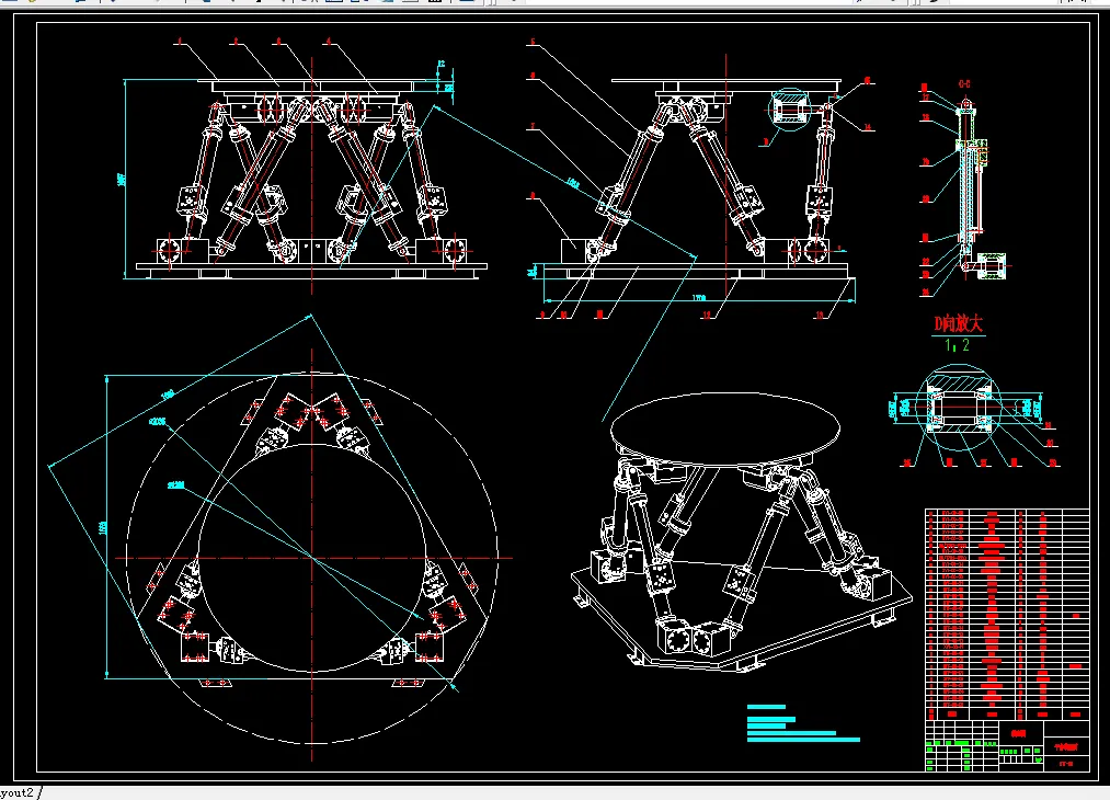 利用以上的理论分析和计算过程,本文针对设计目标的参数要求,给出了Stewart平台的驱动机构优化设计方案,并完成了平台的各个组件的设计。