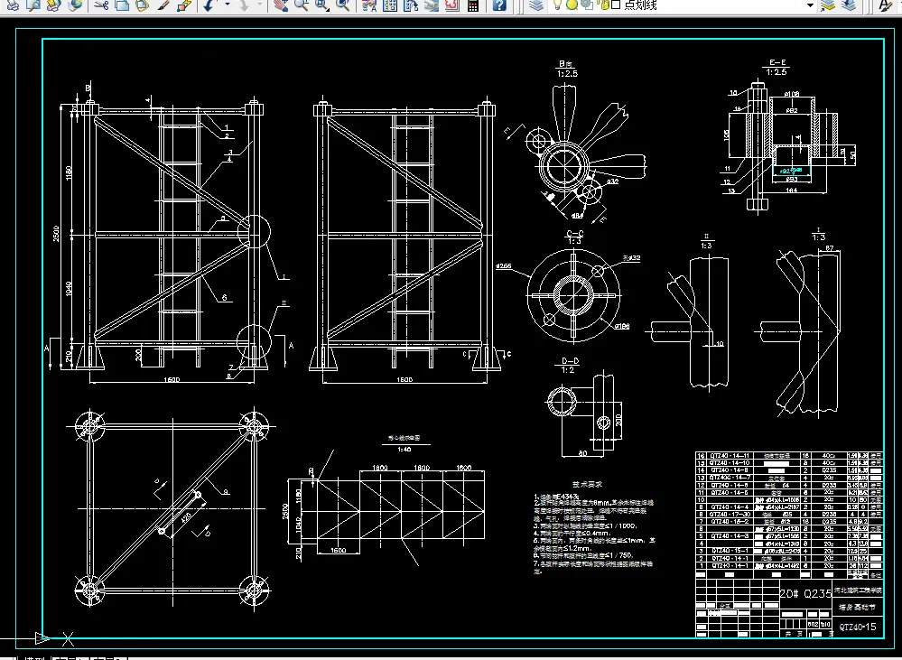 本次设计在参照同类塔式起重机基础上,对QTZ40型塔式起重机进行总体设计及塔身分析设计。在塔身设计工程中,采用了有限元法对其进行分析计算,采用了ANSYS10.0软件进行分析。