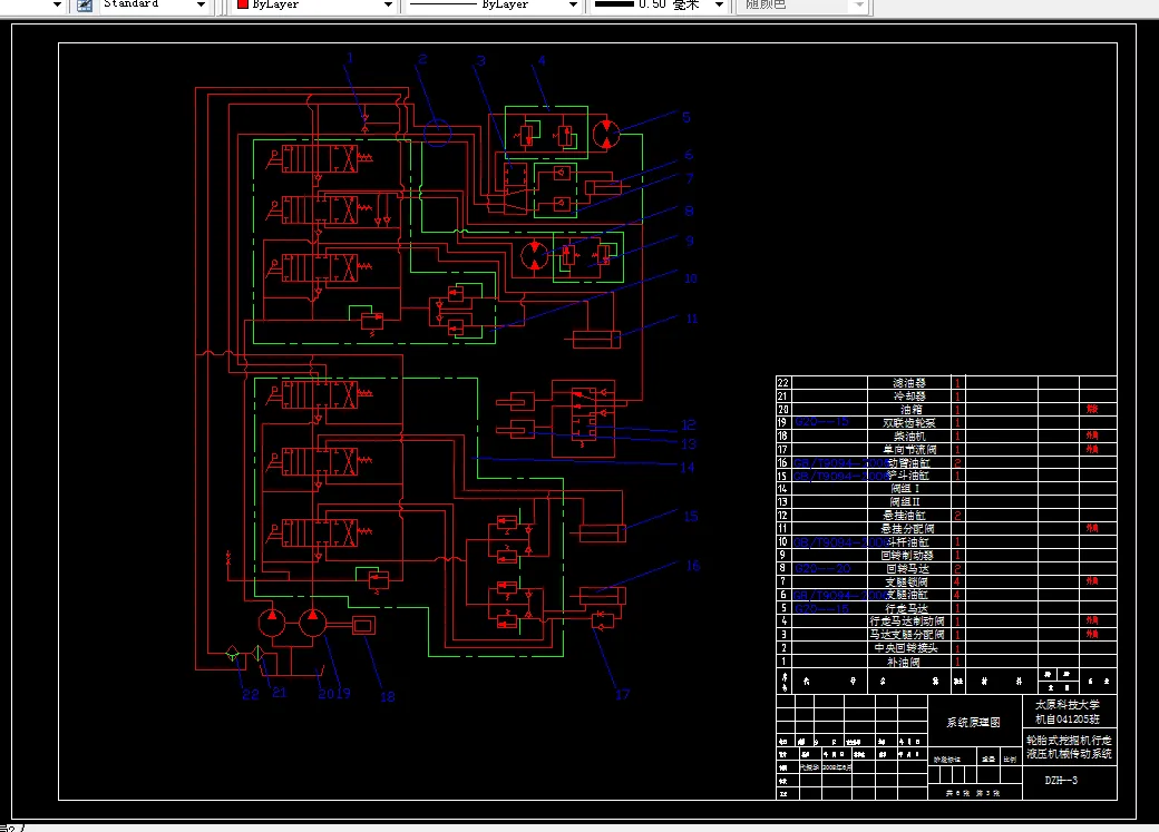 本次毕业设计的主要目的是熟悉机械设计的一般过程,提高理论知识和实践知识的综合运用能力。挖掘机是一种重要的工程机械,它的广泛应用对于减轻劳动量,保证工程质量,加快工程进度,提高劳动生产率起了巨大的作用。此次的毕业设计主要是针对液压机械挖掘机的行走装置进行设计。轮式液压挖掘机的行走装置有液压泵,液压马达,减速器,轮边减速器,转向器等系统组成。液压系统是按照挖掘机各个机构和装置的传动要求。把各种液压组件用管路有机的连接起来的组合体,其功能是将发动机的机械能转化为液压能,经过传送后,再将其转化为机械能,以完成各种动作。