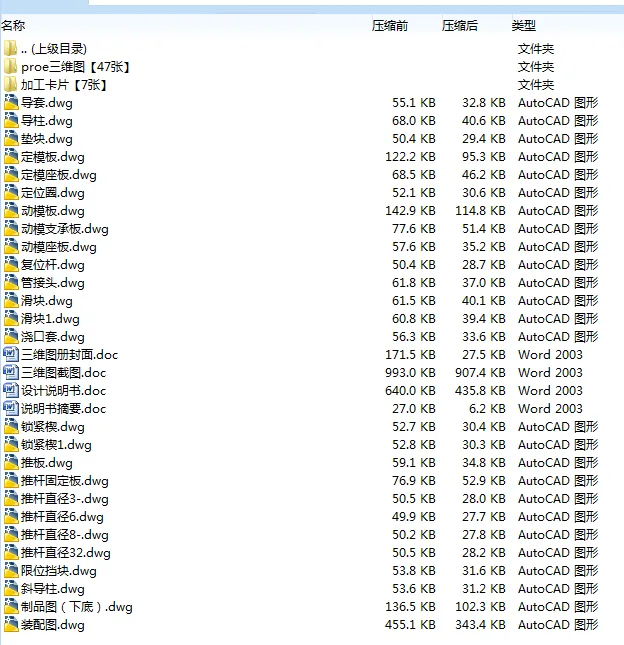 2、若题目上备注三维,则表示文件里包含三维源文件,由于三维组成零件数量较多,为保证预览截图的简洁性,本站将三维文件夹进行了打包。三维及CAD预览截图,均为本站电脑打开软件进行截图的,保证能够打开,下载原件超高清,下载后解压即可;