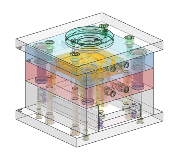 首先利用三维软件的零件模块进行衬筒实体模型的创建,然后利用其制造模块对模型进行分模、型芯的设计、浇注系统的设计,最后利用了其模具生成了标准的模架,并且再进行顶杆、冷却系统、支撑柱等综合布置。在模具的设计过程中,一些比较重要的尺寸(如壁厚、顶杆直径、流道尺寸等)都经过了理论计算或者取一个较为合理的经验数值,并进行了强度校核和流道剪切速率的校核。