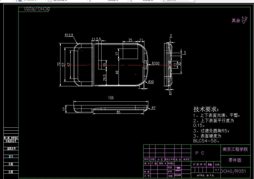 掌上电脑电池后盖注塑模设计,具有复杂的曲面,要求有良好的外观质量。因此,分型面,浇口的位置要选择适当,需要借助UG软件进行分模设计,并完成模具的2D总装图和若干零件图的绘制。