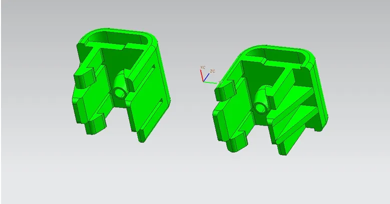 卡扣是连接的工具,考虑到其产量很大,造价的因素,故采用一模多腔模具批量生产。此塑件因为 间有通孔故需采用侧抽芯来完成分型才能生产出所需产品。此塑件结构较简单宜采用两板模就可以了,为了增加成型效果需加上热流道。