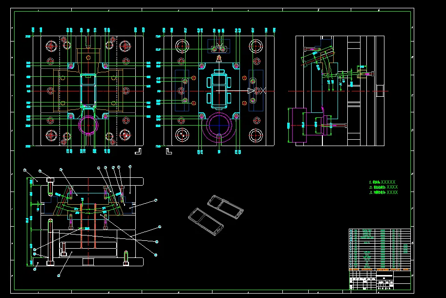 (1) 结构分析:从零件图上分析,零件总体为一个方体和三个行位抽芯。
