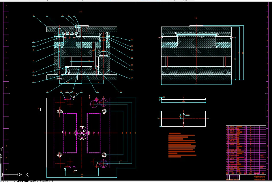 如此设计出的结构可确保模具工作运用可靠。最后对模具结构与注射机的匹配进行了校核。运用pro/e绘制了三维装配图及有关零件图,并用autoCAD绘制了一套模具装配图和零件图。