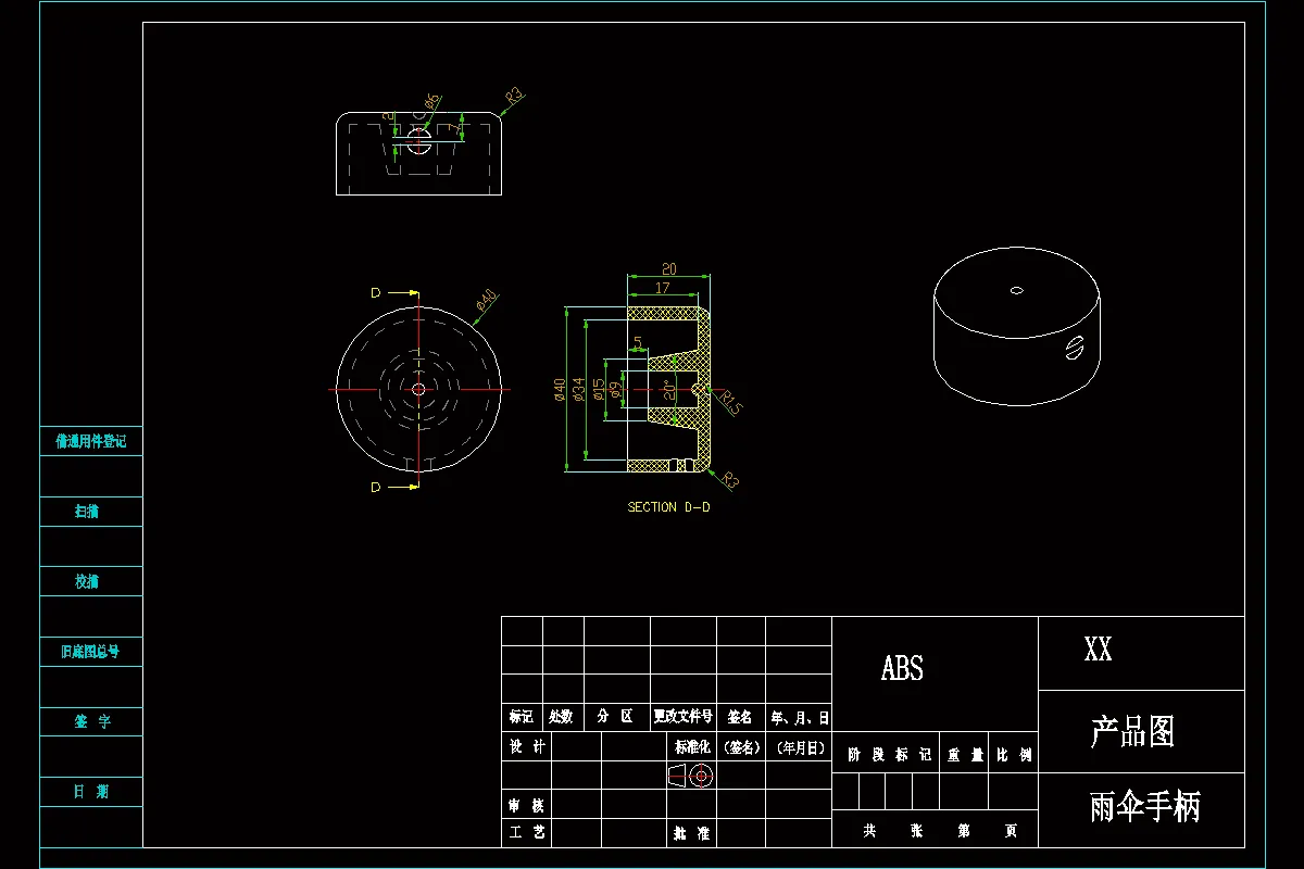 关键词:折叠伞手柄;注塑模具;浇口;分型面;注塑机