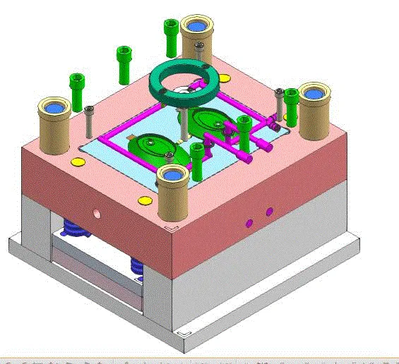 根据美容仪器塑件的要求,了解塑件的用途,分析塑件的工艺性、尺寸精度等技术要求,设计模架尺寸。本模具采用一模两腔,侧浇口进料,注射机采用海天160X2A型号,设置冷却系统,CAD和proe绘制二维总装图和零件图,选择合理的加工方法,从而作出合理的注射模具设计。