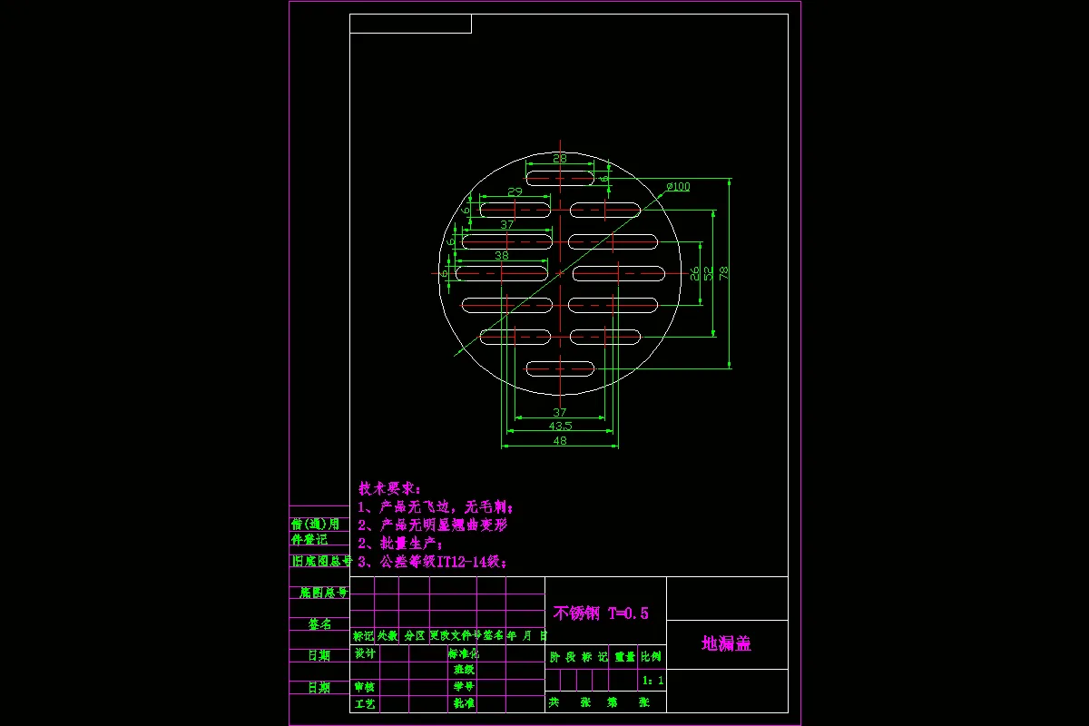 本次地漏盖冲压工艺与模具设计是在指导老师认真、耐心的指导下,对模具的经济性、模具的寿命、生产周期、及生产成本等指标下进行全面、仔细的分析下而进行设计的。在此,我表示衷心的感谢他们对我的教诲。