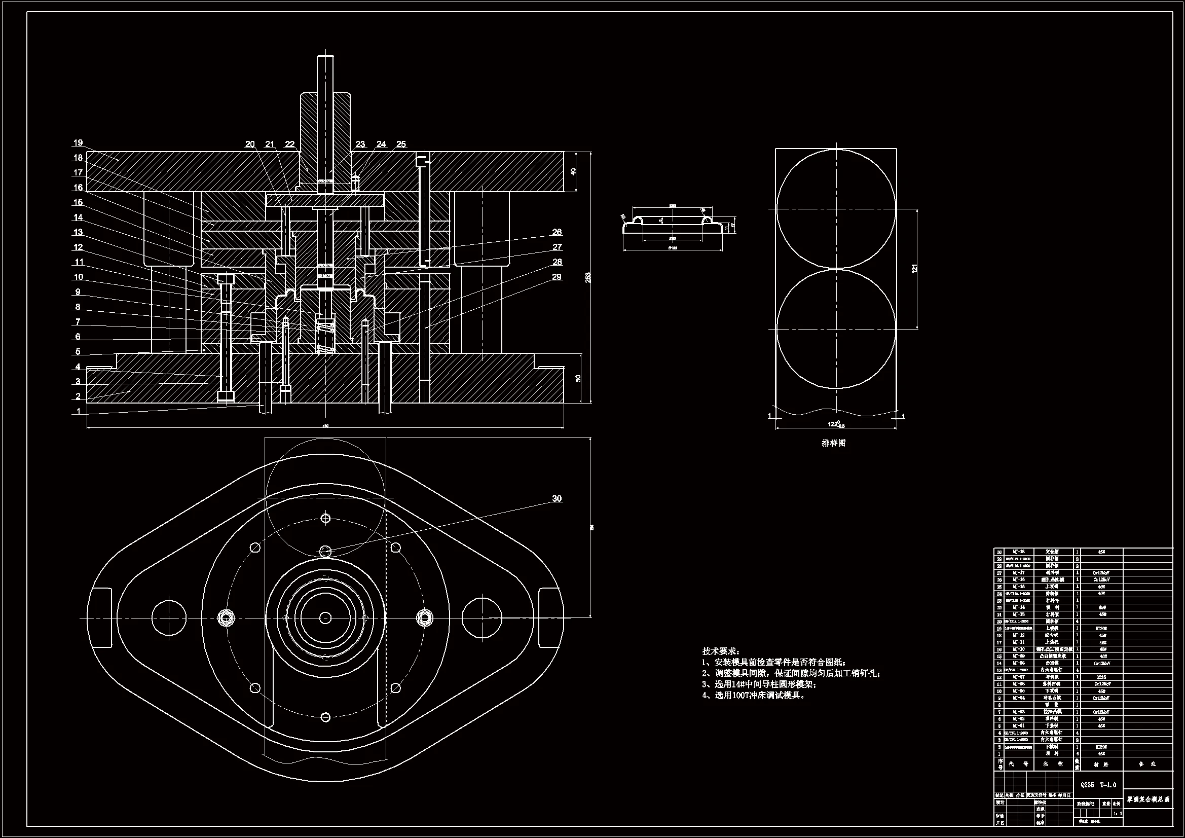 关键字:冲压模、模具设计、复合模、罩圈。