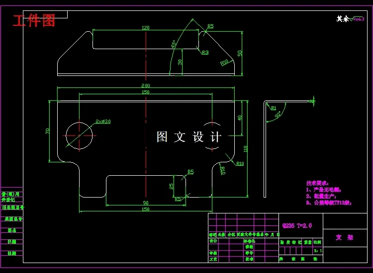 通过对课题的冲压工艺的分析及模具零件的计算后,首先对主要的工作零件以及非标零件进行二维图的绘制,并且绘制本套模具的装配图;其次对主要工作零件的加工进行工艺卡片的编制。