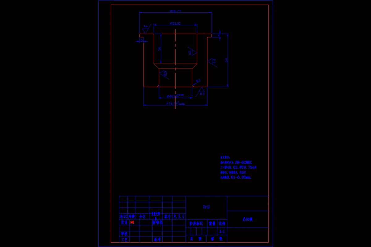 摘要:设计着重介绍了制件的成型工艺,及模具结构设计。通过对制件的工艺分析,确定了工艺方案。并设计了一套落料拉伸复合模具。在设计同时利用参考资料,确定了各工作零件的尺寸。并较多的考虑了模具结构的调整性、易更换性及模具成本。同时在模具设计内容中融汇了冲压模具的不同加工方法、加工工艺及装配工艺,对初学冲压模具模设计者有一定的参考价值。本设计从模具设计到零部件的加工工艺以及装配工艺等进行详细的阐述,并应用CAD进行各重要零件的设计。