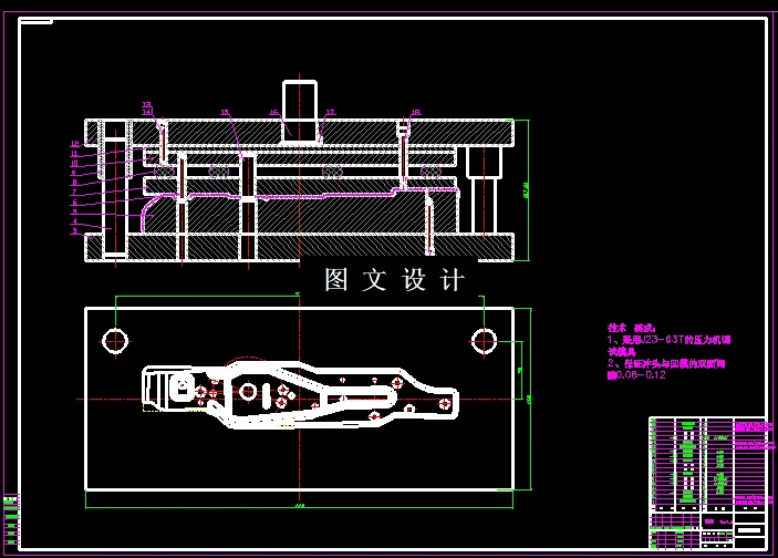 设计从衬片冲压工艺性分析开始,确定合适的冲裁模具结构,并进行相应排样的设计,之后计算工具刃口公差和工艺力部分。模具结构设计中,在确定了模具的定位形式,卸料出件的方式后,设计了冲裁凸模,凹模等关键零部件和各个板件,最后进行冲压模具的装配,和压力机的校核,并绘制相关的模具装配图和零件的工程图。