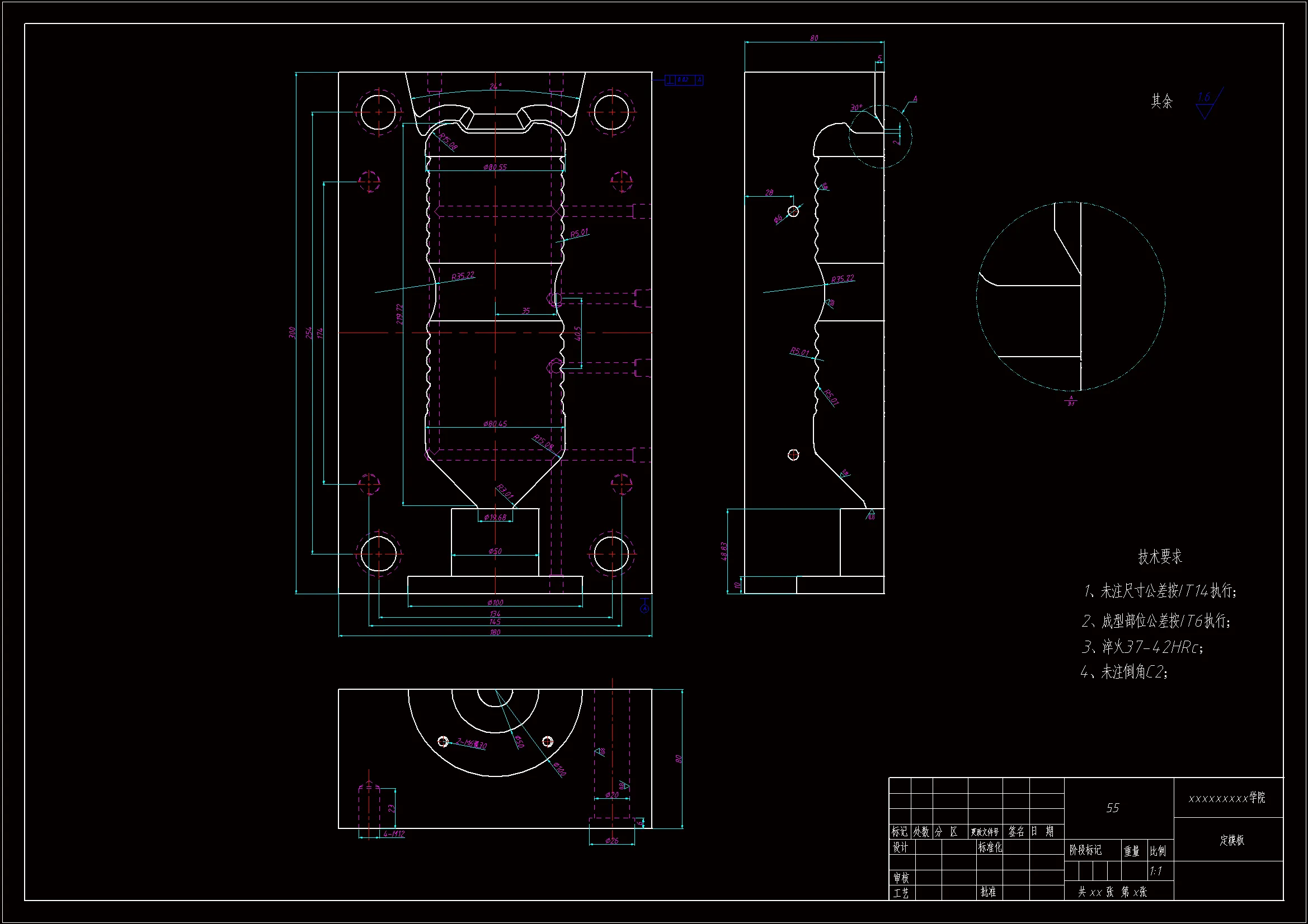 本次设计的课题为塑料瓶吹塑模具的设计。瓶的形状是腔大口小,要是采用普通的注射模设计,型芯将难以脱离。虽然可以采用变型芯,但那样会使模具成本大幅度增加,且设计难度比较大。因此塑料瓶模具为上吹型中空吹塑模具,采用嵌块式结构,水路冷却,结构简单,耐用,便于更换部件,生产效率比较高。模具由动模板、定模板、切割环、模口嵌块、夹坯口、余料槽以及固定板等部件组成。