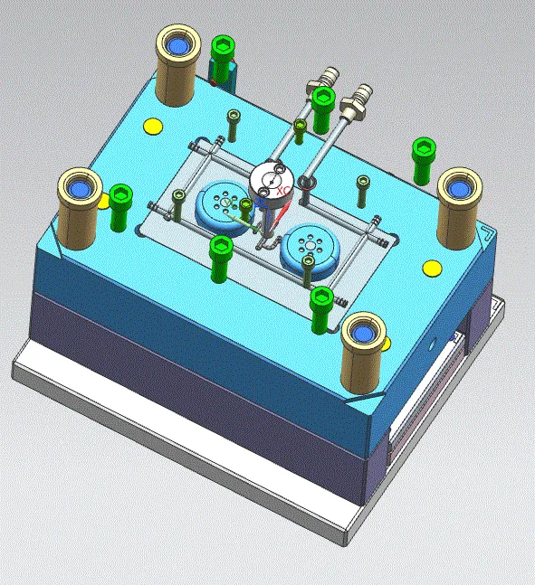本设计分析了塑件的结构,提出了模具设计的关键点,设计了模具的整体结构。根据塑件分型面的位置,设计了推件板和斜顶杆的推出结构,零件采用了双分型面的侧浇口,提高了零件的外面质量。通过对塑件进行工艺的分析及其结构分析,从产品结构工艺性,具体模具结构出发,对模具的浇注系统、模具成型部分的结构、顶出系统、注射机的选择及有关参数的校核都有详细的设计。该模具一模两腔,采用顶针顶出结构。经过生产验证,该模具结构合理,动作可靠。