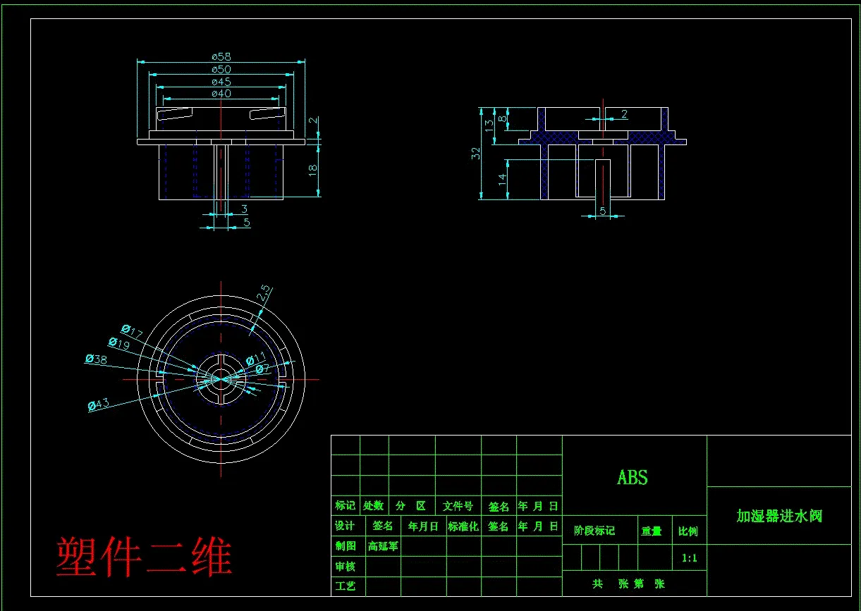 对注塑产品提出了基本的设计原则;详细介绍了塑件成型工艺设计,注射机的选择,浇注系统的的设计,成型零件的结构设计,脱模推出机构的设计,冷却系统的设计的过程。并对标准模架的选择也作了相应的介绍。通过本次设计,使我掌握了注塑模具设计的全过程,同时也提高了运用CAD绘制复杂装配图的能力。