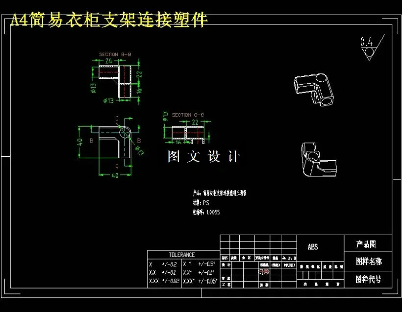 关键词:简易衣柜;塑料三通管,注塑模具;推出机构