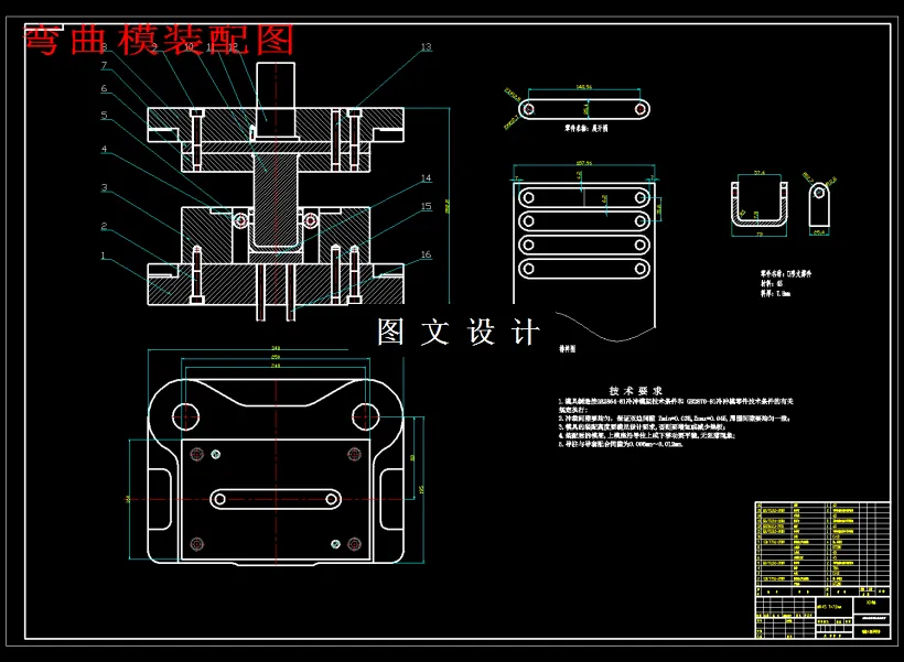 关键词:复合模;CAD;U形支撑件;弯曲模