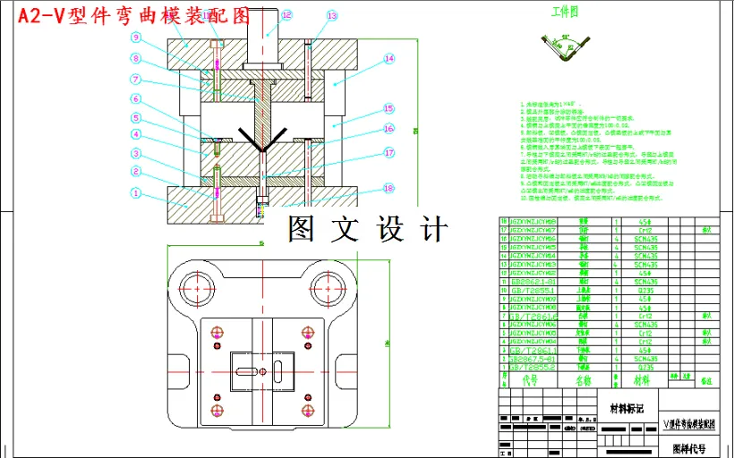 Q235号钢为普通碳素结果钢,性质较软,具有较好的弯曲性能,弹性模量E=200~220GPa ,抗拉强度σb=375~500MPa。该弯曲件外形简单,精度要求不高,工件厚度小,可以采用单工序模弯曲,且定位精度易保证。冲压工艺分析可知,采用单工序冲模,所以采模具类型为单工序模。因为工件料厚为1mm,相对较薄,卸料力不大,故可采用弹性料装置卸料。
