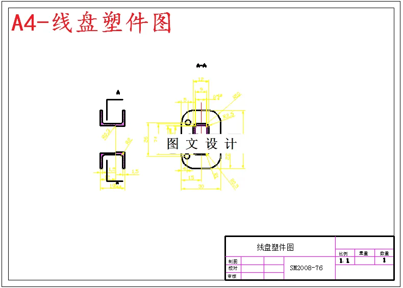 该塑件是一线盘,生产批量大,材料为聚乙烯—丁二烯—丙烯腈三元共聚体(ABS)。依据对塑件结构的分析,采用矩形直浇口浇注,因此采用单型面。初步选择一模两腔。由于考虑到塑件的外观尺寸和塑件的形状,且是一模两腔,则选用矩形侧浇口。