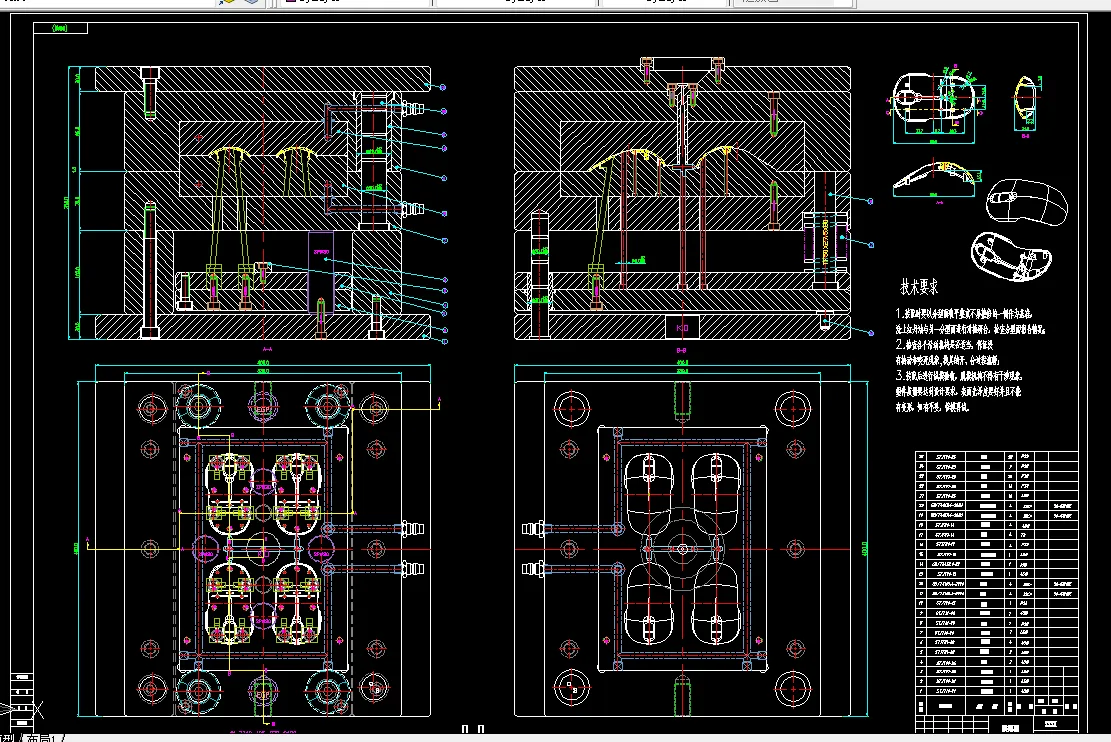 本次设计中,采用了AutoCAD二维设计软件绘制注塑模具的二维装配图与非标零件图,采用了三维软件绘制模具的整体装配图,在计算机辅助设计中,还采用了专业的插件来进行辅助设计。