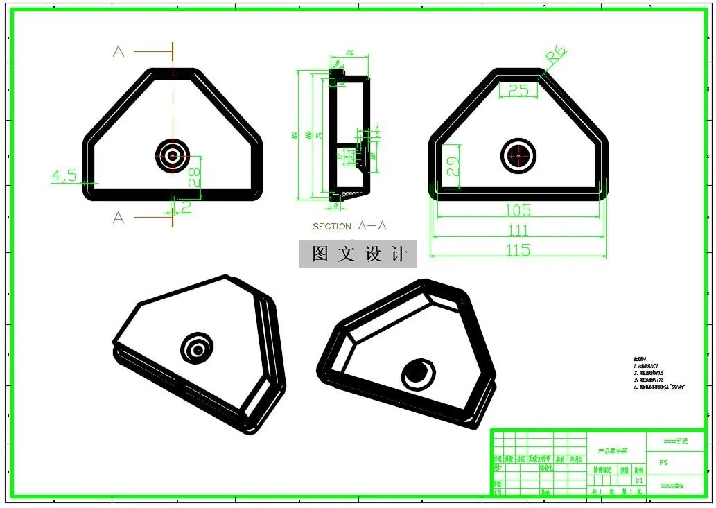 注射模可设计成一模一腔也可设计成一模多腔。其数目的确定要从以下几个方面考虑: 1、注塑产品的尺寸及结构的复杂性 2、塑件的尺寸精度—型腔越多,精度也相对降低。这不仅由于型腔加工精度产差,也由于熔体在模具内流动不均所致。 3、制造难度—多腔模比单腔模的难度大。 4、制造成本—多腔模高于单腔模,但不是简单的倍数关系。从塑单件成本中所占的费用比例来看比单腔模低。 5、注塑成型的生产效益。从表面上看,多腔模比单腔模高的多,单多腔模所使用的注射极大,每一注射循环期长而维持费用高。 根据以上几方面,一般小尺寸及结构简单的模具适合一模多腔。针对本次所设计的模具,其塑件的外型尺寸为Φ28×18(mm)为中型且结构复杂,我选择一模两腔。 405655