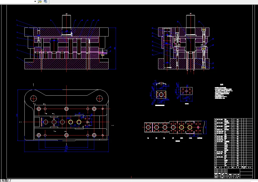 本次毕业设计的内容是支座冲压模具的设计,为了从设计中得到完好的制件及更熟练地掌握模具设计。我们进行了多个方面的分析,具体有材料分析、结构分析、工序分析。设计流程大致为工艺分析、方案确定、工艺参数计算、模具零件设计、零件图装配图的绘制。首先进行工艺分析对零件结构及材料有一定的认识,该工件是一个基本对称的结构,含有四个小孔一个大孔,还有弯曲部分的厚度为 1.5mm 的钣金类材料。10 钢抗拉强度和抗剪强度均适中,具有良好的冲压性能。由于它包含冲孔,落料,翻孔, 弯曲等多种常用工序,外形由落料完成。由于工序繁多复杂,需大批量生产,为了提高生产效率,提高工件质量及节约成本,选出合适的方案为级进模冲模。工艺参数计算完成后需要设计零部件和模具大体结构。在模具图的绘制中尽量简单明了易懂以降低生产成本。