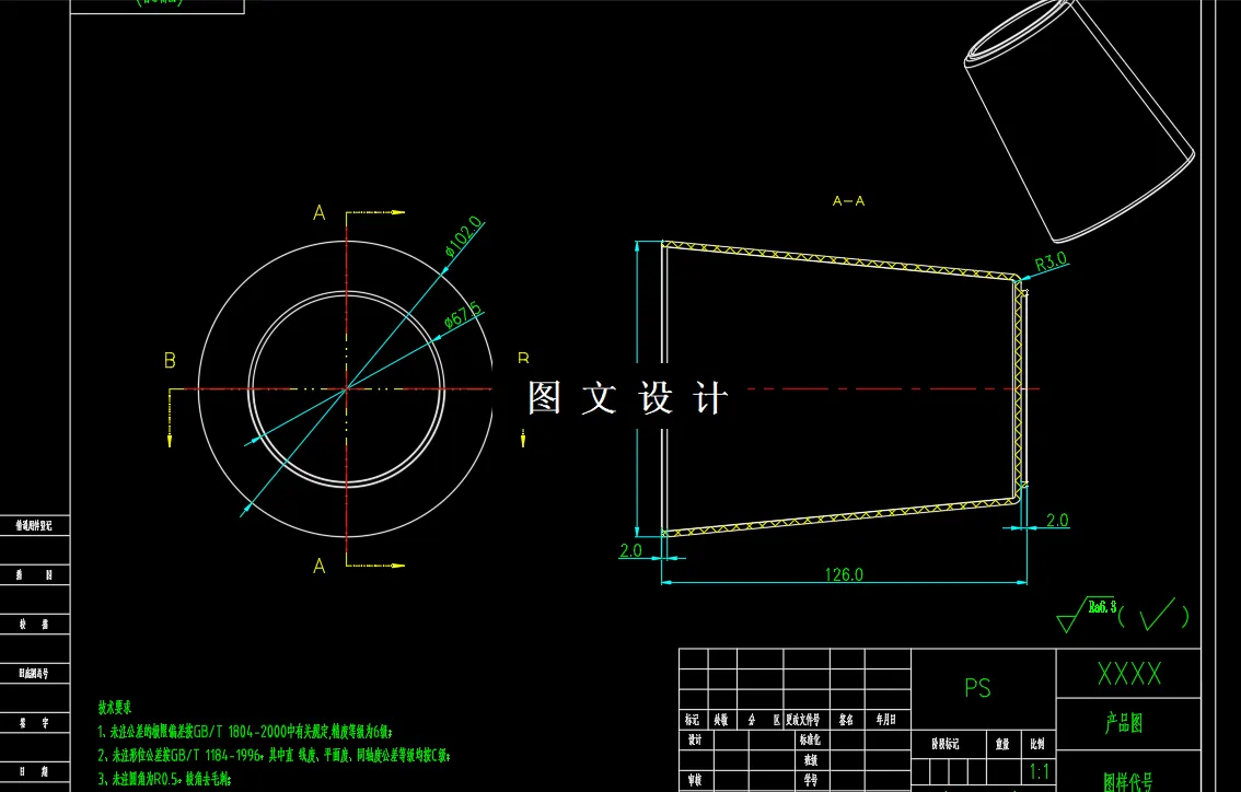 本次设计首先根据塑件的外形结构特点,选择了合适的热塑性高分子材料类型,分析注塑工艺,进行了模具型腔出模数量的确定,完成了流道浇注系统的设计,进行模具温度调节冷却水道设计,对于成型零件的设计方面,选择了分型面,确定了型芯和型腔的结构设计和成型尺寸的计算与校核。顶出系统的合理布局能够实现塑件的顺利脱模。选用了标准GB模架系统来实现标准模块设计与制造,缩短制造周期。 在完成模具设计之后,通过查注塑模具设计指导手册,选择了相关注塑机,确定了注塑机基本型号,根据注塑机参数表进行校核与计算,包括注塑量,注塑压力,锁模力,安装尺寸等数据。