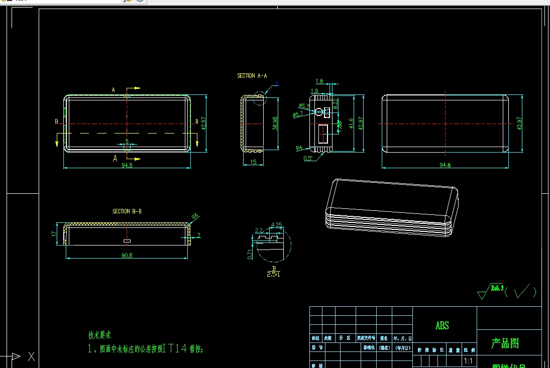 本次设计首先根据塑件的外形结构特点,选择了合适的热塑性高分子材料类型,分析注塑工艺,进行了模具型腔出模数量的确定,完成了流道浇注系统的设计,进行模具温度调节冷却水道设计,对于成型零件的设计方面,选择了分型面,确定了型芯和型腔的结构设计和成型尺寸的计算与校核。顶出系统的合理布局能够实现塑件的顺利脱模。选用了标准GB模架系统来实现标准模块设计与制造,缩短制造周期。